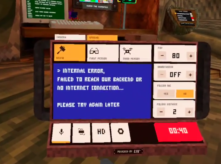 Issue: You're streaming and it stops by itself, showing the blue screen error. "Internal error, Failed to reach our backend or no internet connection."
